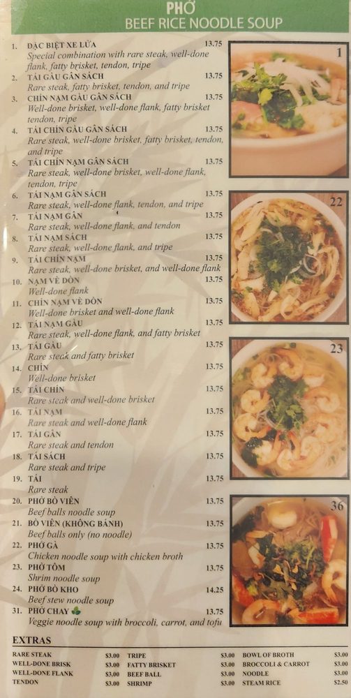 Pho So 1 at 6450 Sepulveda Blvd Van Nuys, CA offers authentic Vietnamese cuisine with a focus on pho. This casual spot provides vegan and limited vegetarian options along with beer and wine choices. Customers rave about the huge portions, dependable service, and flavorful broth. The menu includes traditional dishes like bun thit nuong and egg rolls, with customers praising the Special Combo Pho and fried egg rolls. Despite occasional slow service, the focus is on the delicious food that doesn't require extra water due to its tasty, MSG-free broth. The chunky eggrolls with pickles and carrots are a unique twist worth trying. Overall, Pho So 1 is recommended for those craving authentic Vietnamese cuisine in a welcoming, clean environment with fast service.